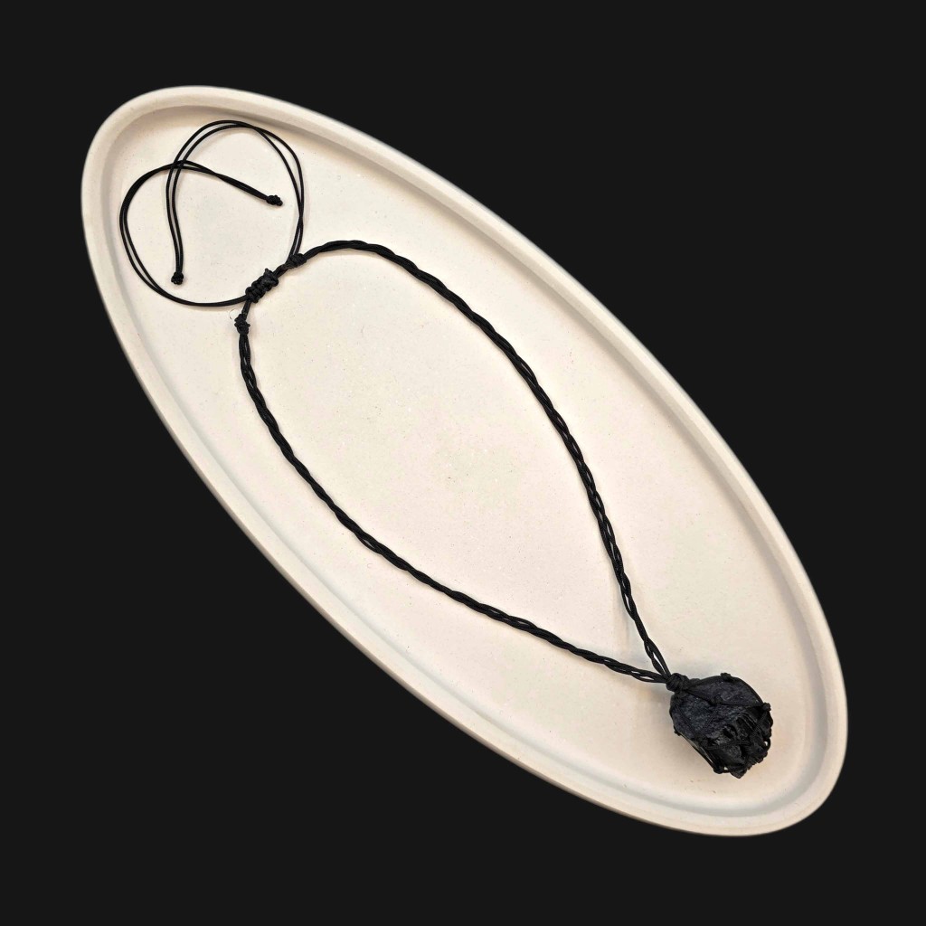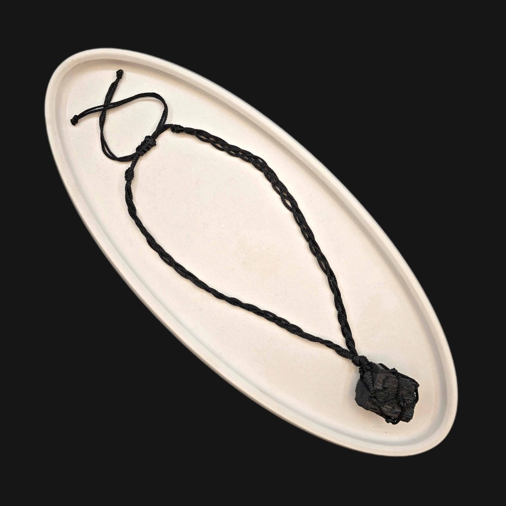 آویز تورمالین سیاه راف با مکرومه دستبافت – محافظ انرژی طبیعی