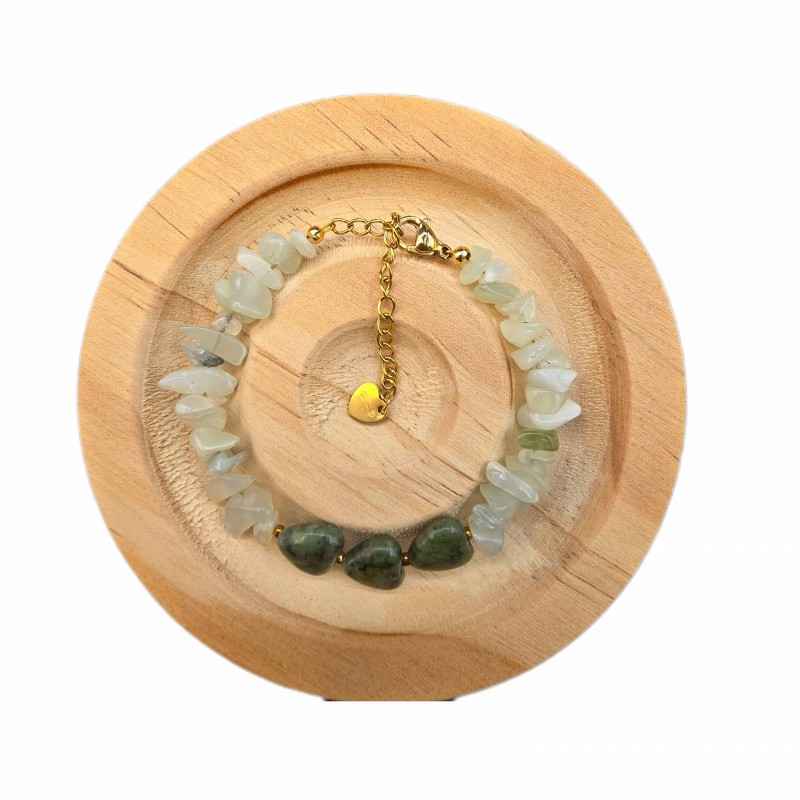 دستبند ترکیبی سنگ جید سبز نامنظم با قلب یشم سرپانتین
