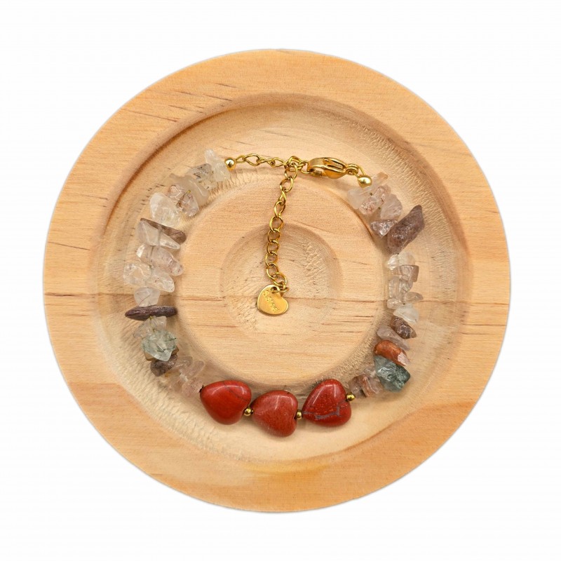 دستبند ترکیبی کوارتز روتایل نامنظم و قلب جاسپر