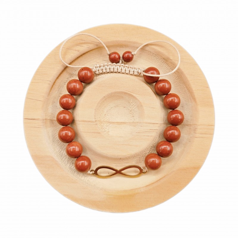دستبند سنگ جاسپر سرخ با پلاک بینهایت