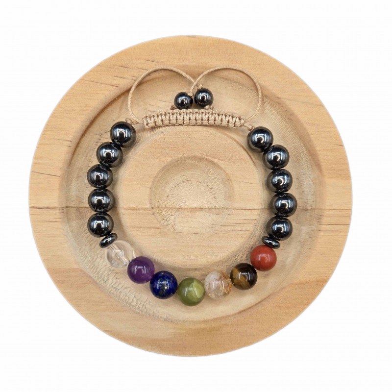 به دلیل وجود سنگهای هفت چاکرا داخل دستبند، برای تنظیم و تعادل چاکراهای بدن نیز مناسب هست.