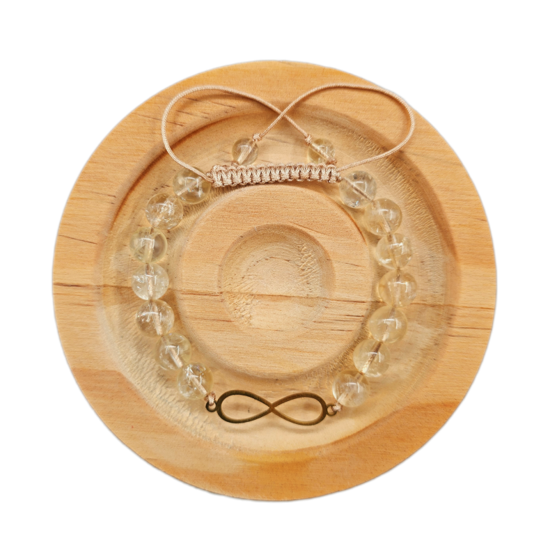 دستبند سنگ سیترین شفاف با پلاک بینهایت