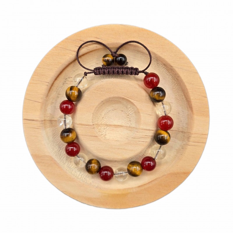 دستبند سنگ عقیق سرخ، سیترین و چشم ببر | دستبند سنگی انرژی، موفقیت و شجاعت