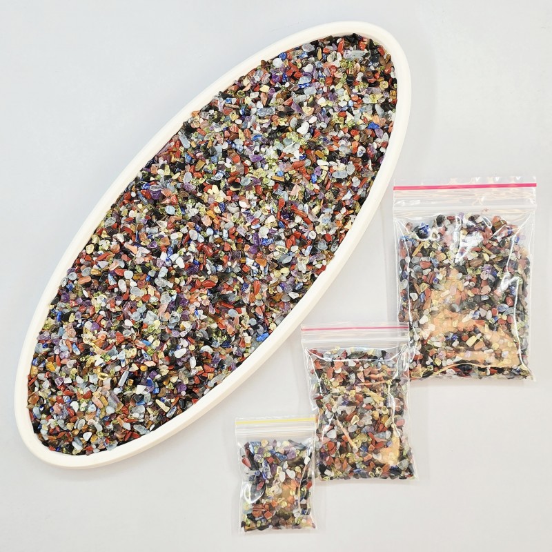 -به میزان مساوی از سنگهای زبرجد-جاسپر سرخ- آکوامارین-سیترین-چشم ببر-عقیق پرشین-امیتیست- کریستال کوارتز-ابسیدین سیاه-گارنت سرخ و لاجورد تهیه شده.