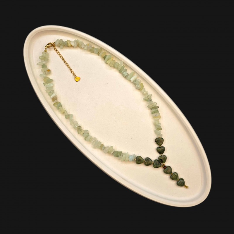 گردنبند ترکیبی جید سبز نامنظم با قلب یشم سرپانتین