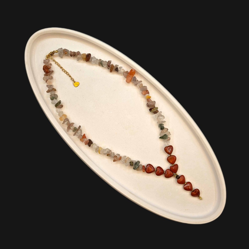 گردنبند کوارتز روتایل نامنظم و قلب جاسپر