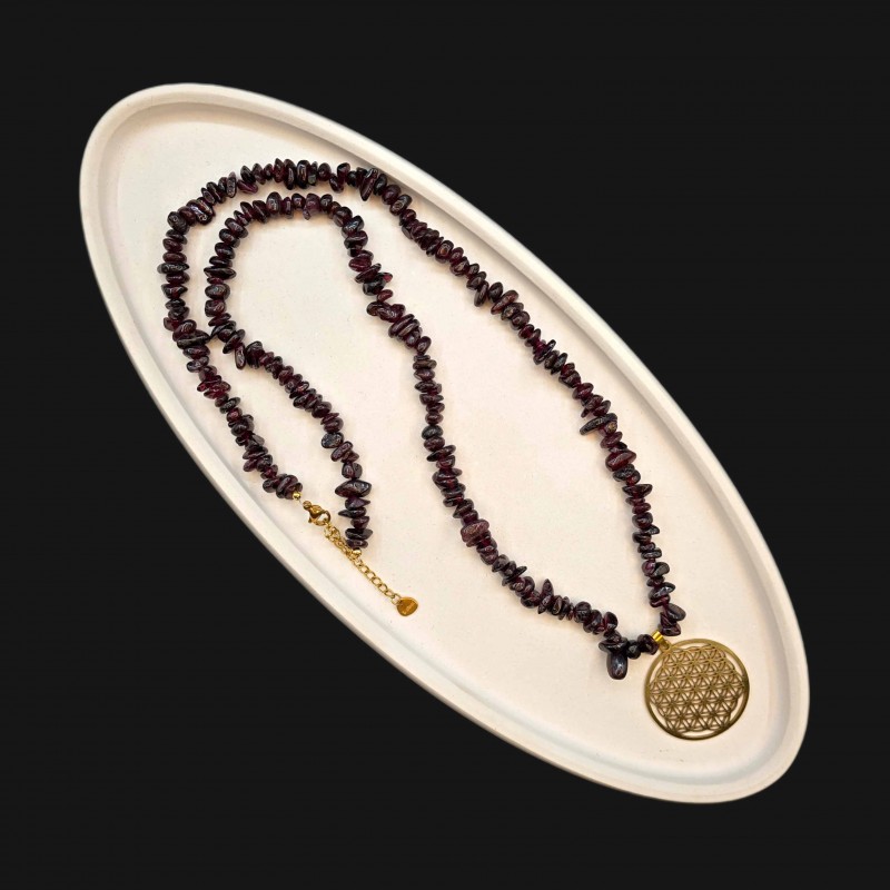 گردنبند گارنت نامنظم با گل زندگی طلایی