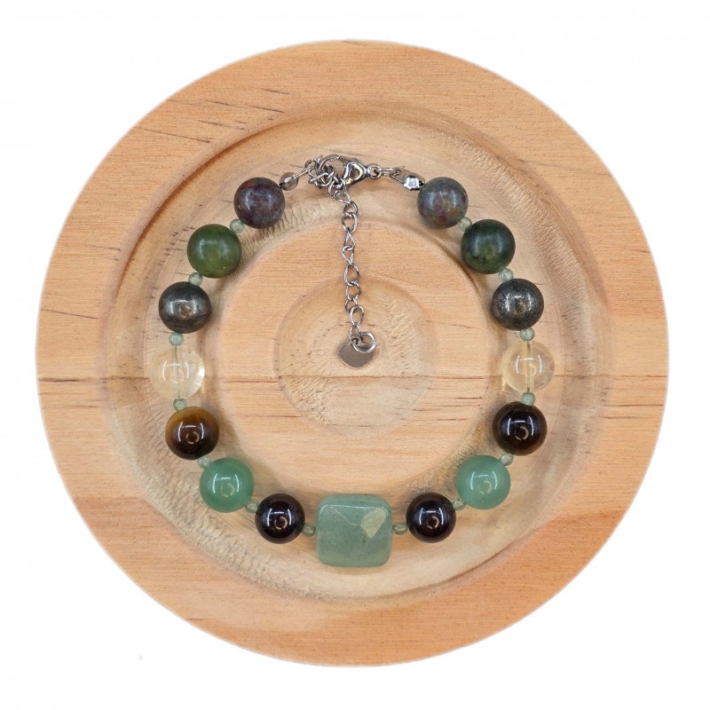 قابل تنظیم با زنجیر ،مناسب برای سایز مچ 15 سانت به بالاسنگهای بین مهره ها از جنس اونتورین طبیعی است.