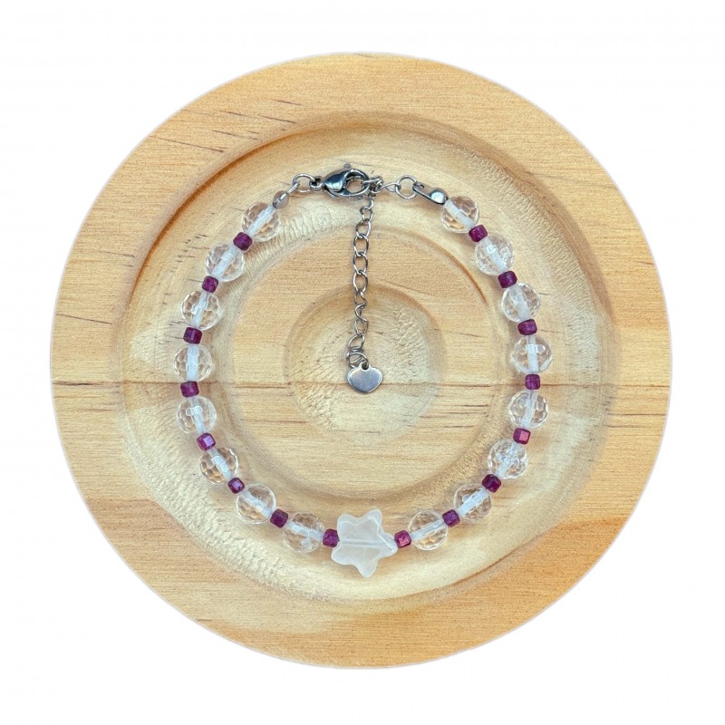 -کریستال کوارتز ستاره ای در مرکز - بین مهره‌ها یاقوت سرخ تراش خورده- کریستال کوارتز تراش خورده سایز 6 در اطراف
