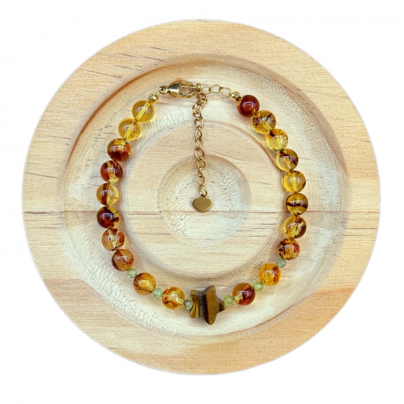 -چشم ببر ستاره ای در مرکز-بین مهرهها زبرجد(پریدوت) طبیعی-کهربای جوان (کوپال ) سایز 6-متریال تمام استیل رنگ ثابت ضد حساسیت