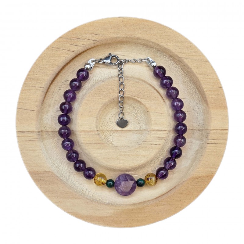 -آمیتیست تراش در مرکز-مالاکیت سایز4 و کهربا کوپال سایز 6-آمیتیست تیره درجه 1 سایز 6-متریال تمام استیل رنگ ثابت ضد حساسیت