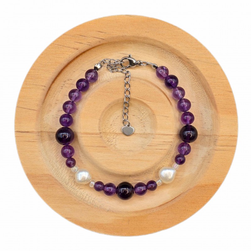 دستبند آمیتیست و مروارید طبیعی پرورشی طرح 1