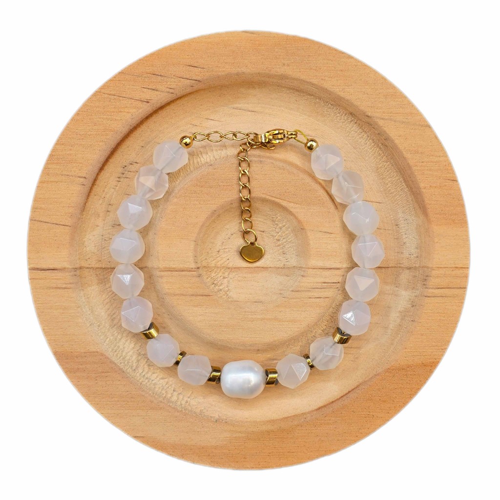 دستبند عقیق سفید تراش و مروارید طبیعی پرورشی