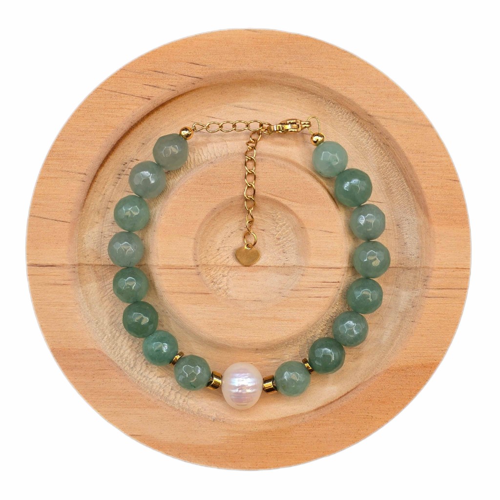 دستبند آونتورین تراش و مروارید طبیعی پرورشی