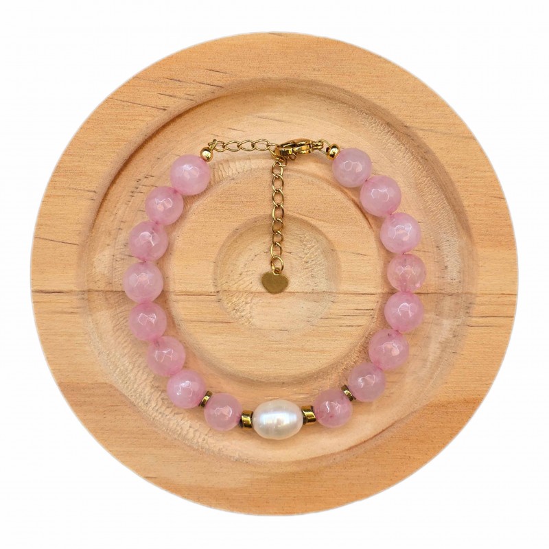 دستبند کوارتز صورتی تراش و مروارید طبیعی پرورشی