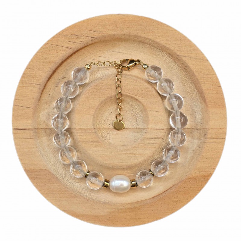 دستبند کریستال کوارتز تراش و مروارید طبیعی پرورشی