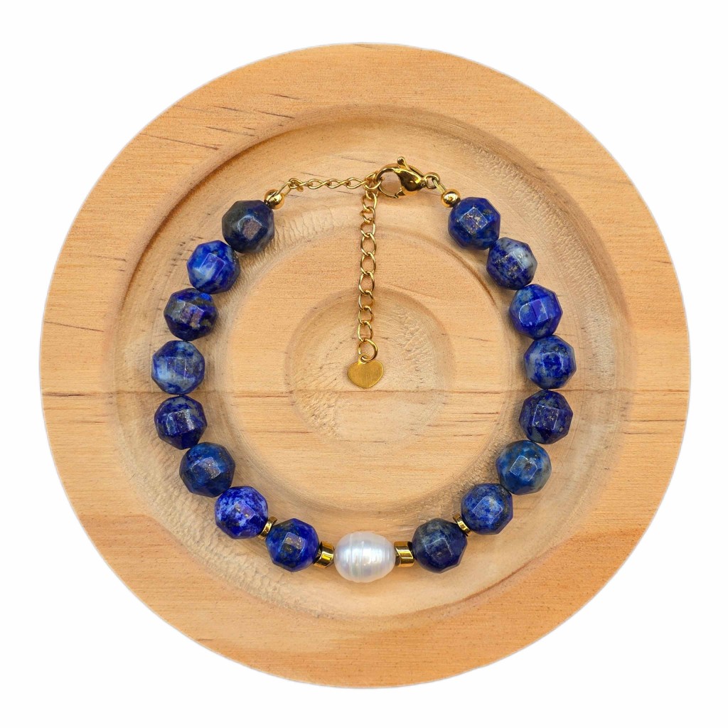 دستبند لاجورد تراش و مروارید طبیعی پرورشی
