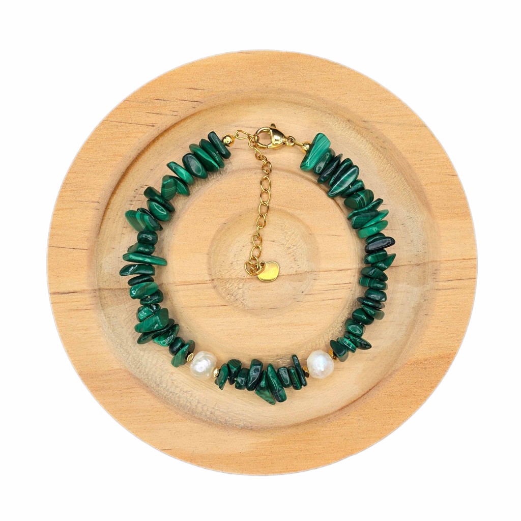 دستبند مالاکیت نامنظم و مروارید طبیعی پرورشی