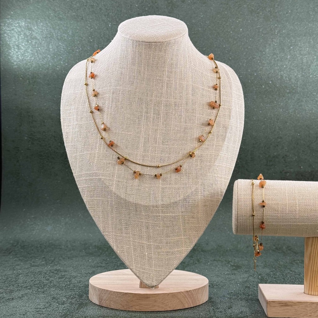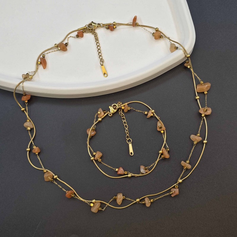 ست گردنبند و دستبند سنگ اونتورین نارنجی زنجیری