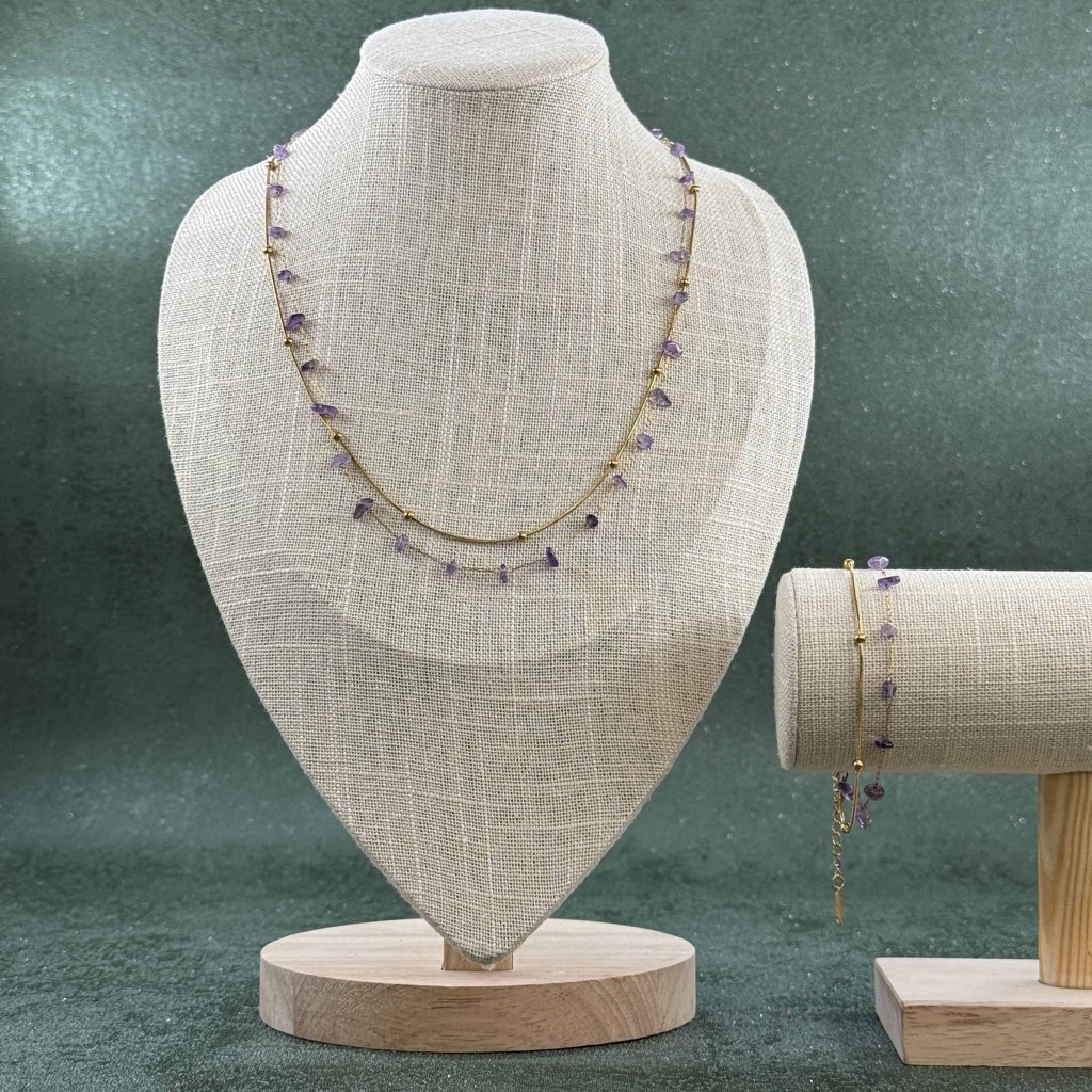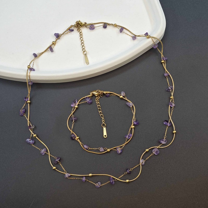 ست گردنبند و دستبند سنگ آمیتیست زنجیری سایز کوچک