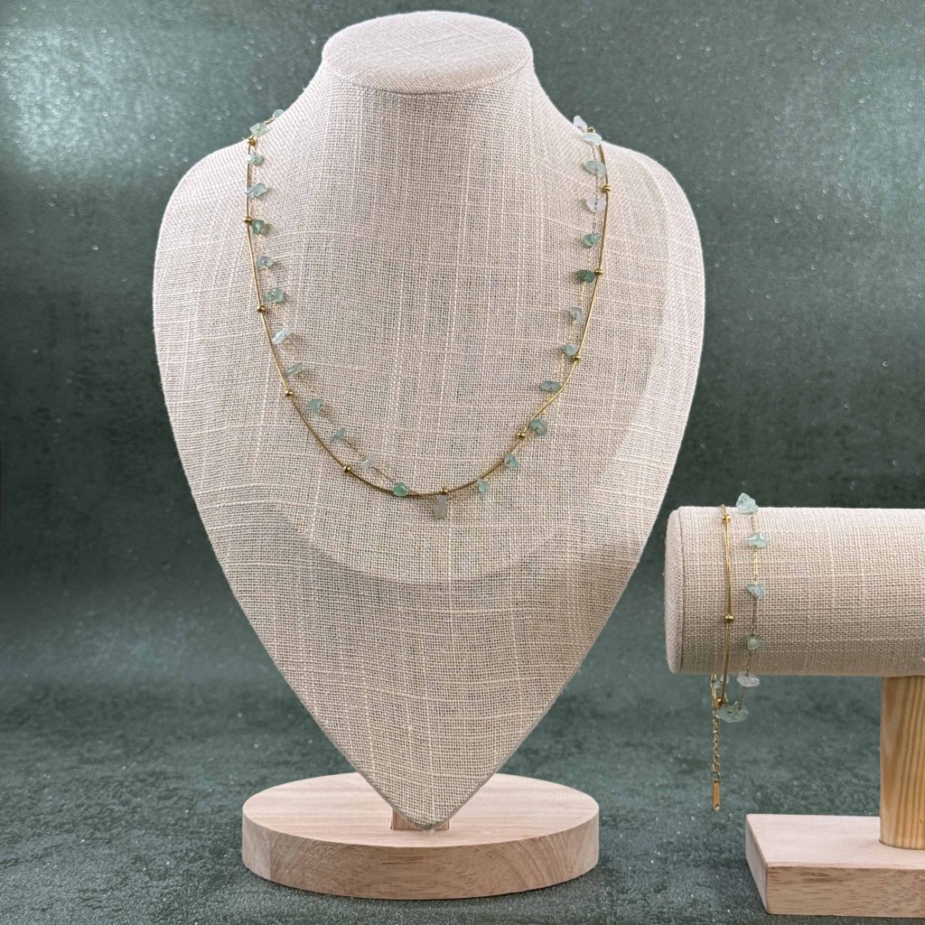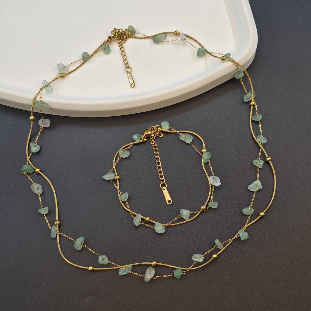 ست گردنبند و دستبند سنگ اونتورین سبز زنجیری