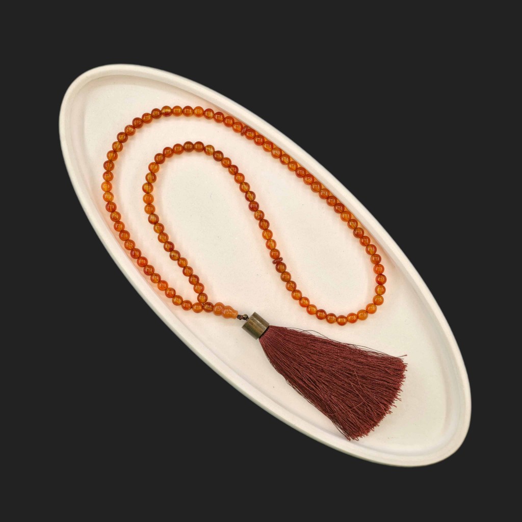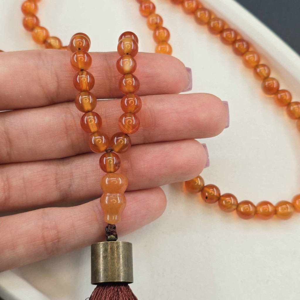 تسبیح 101 عددی عقیق کارنلین و شیخک کدو قلیانی اونتورین نارنجی