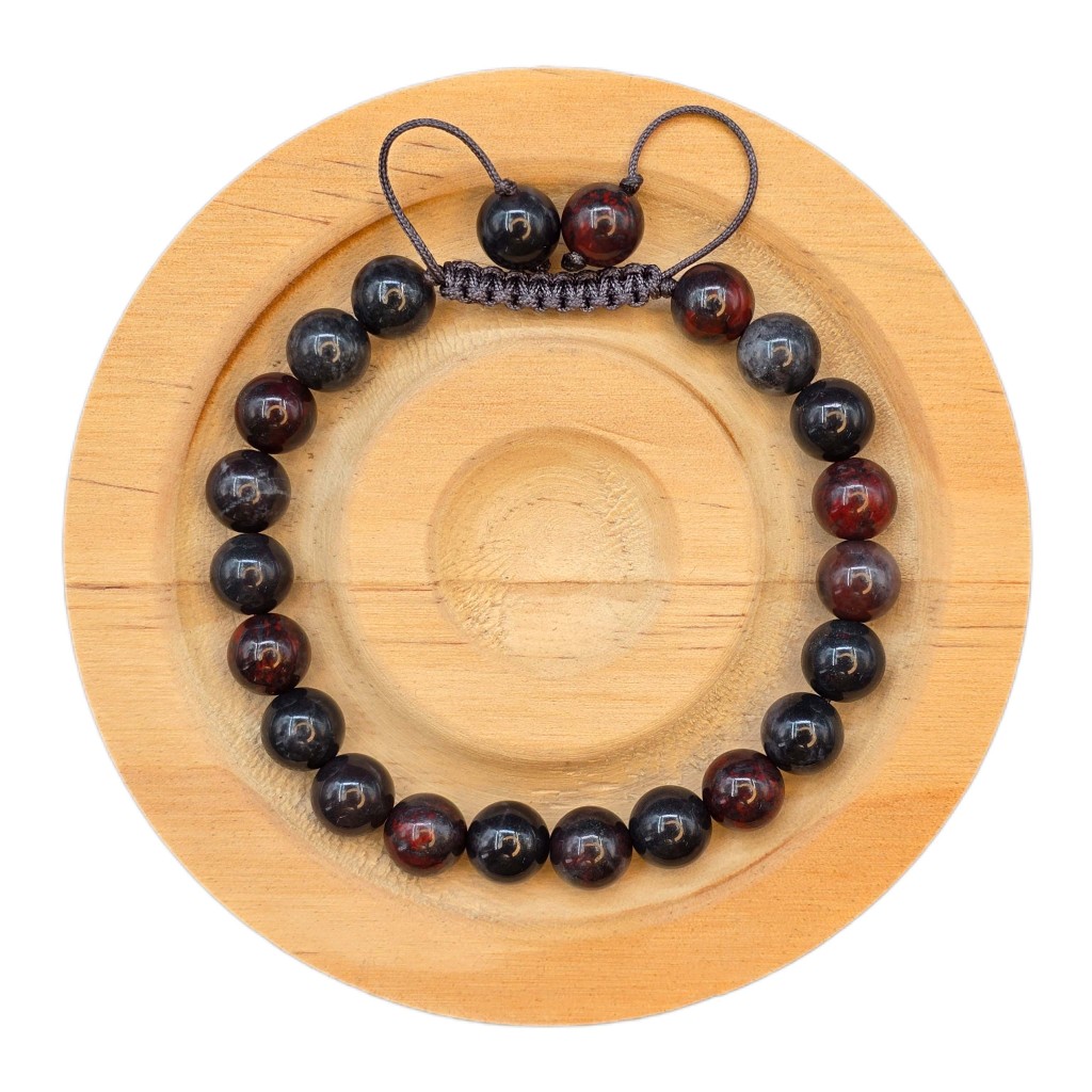 سنگی با درخشندگی عمیق و زمینهی مشکی قهوهایـقرمز تیره است که نیروی درونی و تمرکز ذهن را تقویت میکند. حضور رنگهای غلیظ در آن نماد استقامت و حفاظت انرژیاییست و در فرهنگهای باستانی برای پایداری و حفظ تمرکز استفاده میشد.