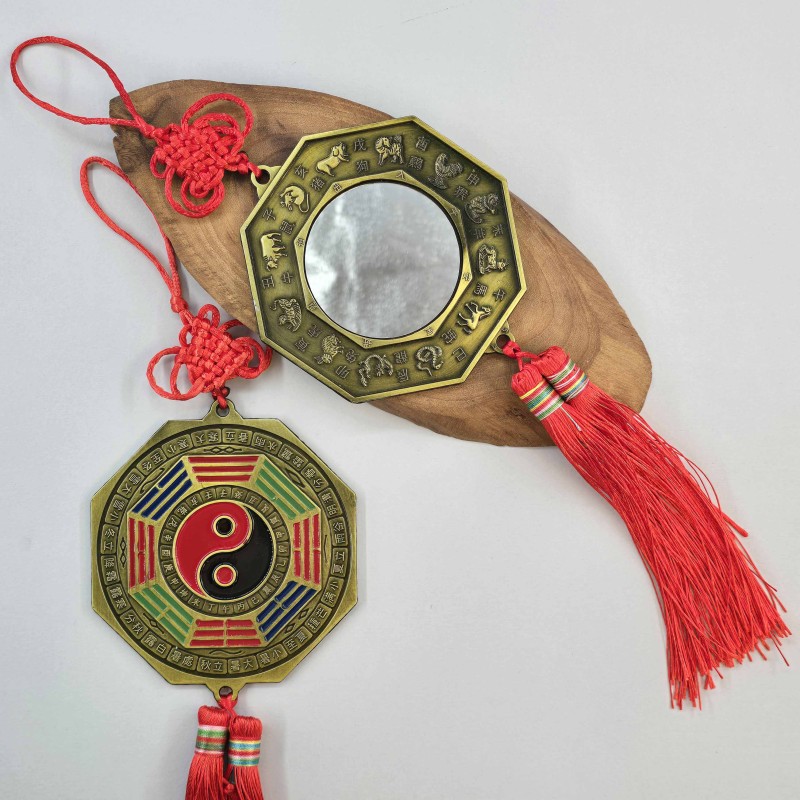 - اینه پاکوای فلزی دو طرفه است اگر نیاز دارید برای داخل بنا از این آینه استفاده کنید، به سمت نماد یین و یانگ قرار دهید.