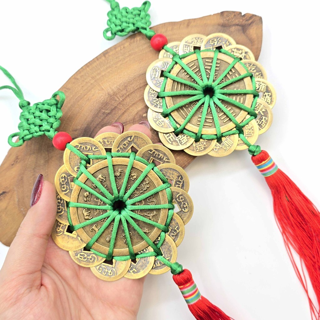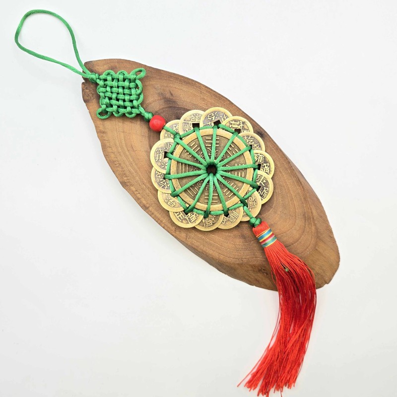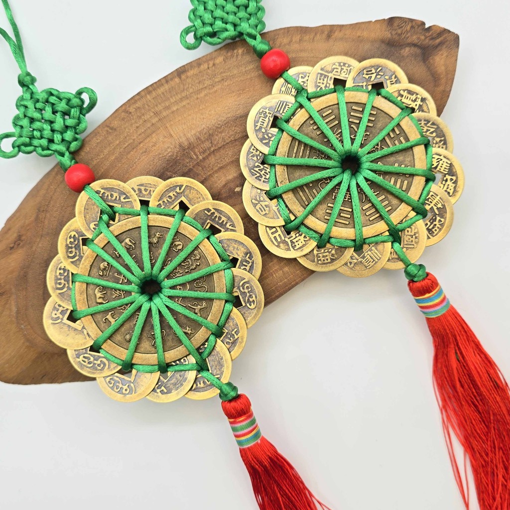 ترکیب سکه‌های نمادین با گره فنگ‌شویی، انرژی ثروت، عشق، طول عمر و سعادت را در محیط تثبیت کرده و از ورود انرژی‌های منفی جلوگیری می‌کند.
