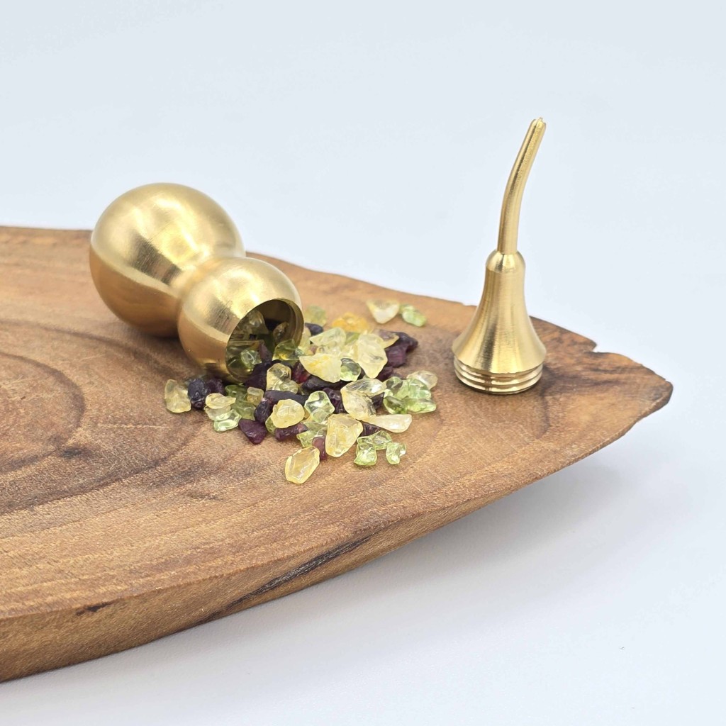 کدو قلیانی برنجی 5/5 سانت با سنگ سیترین، زبرجد و گارنت