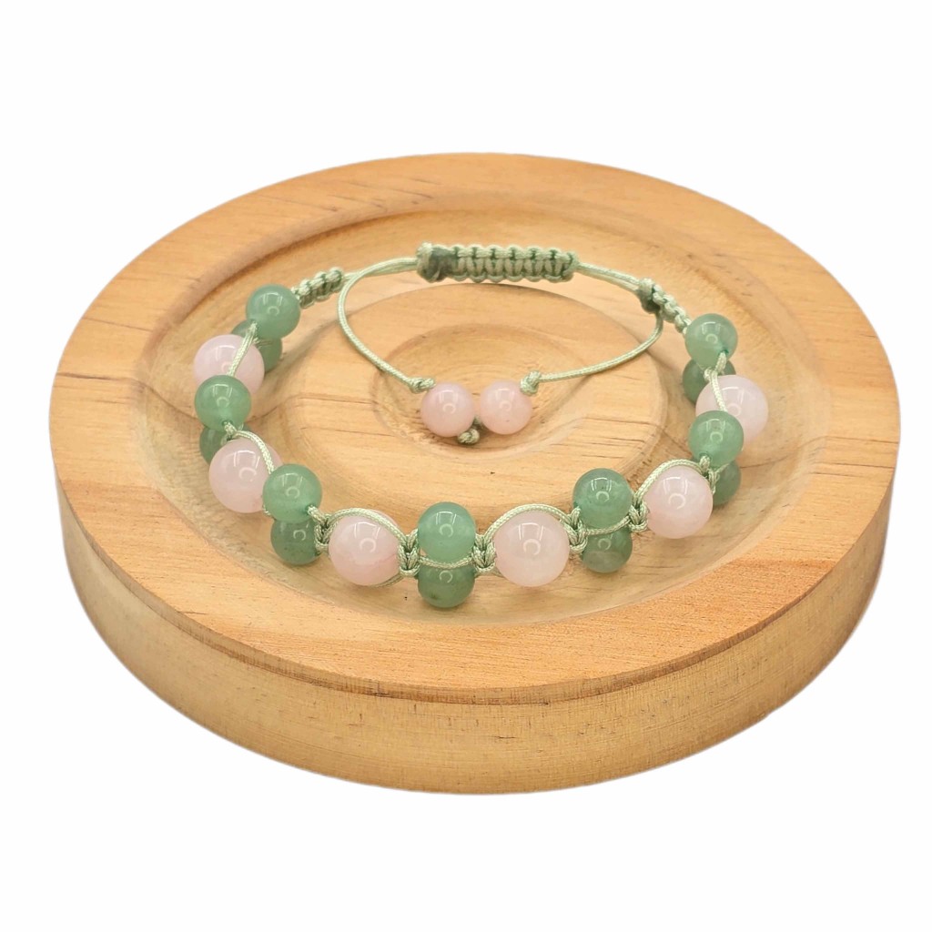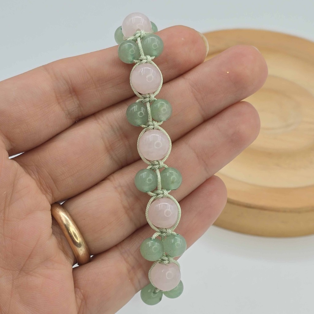 دستبند بافت اونتورین سبز و کوارتز صورتی ماداگاسکار