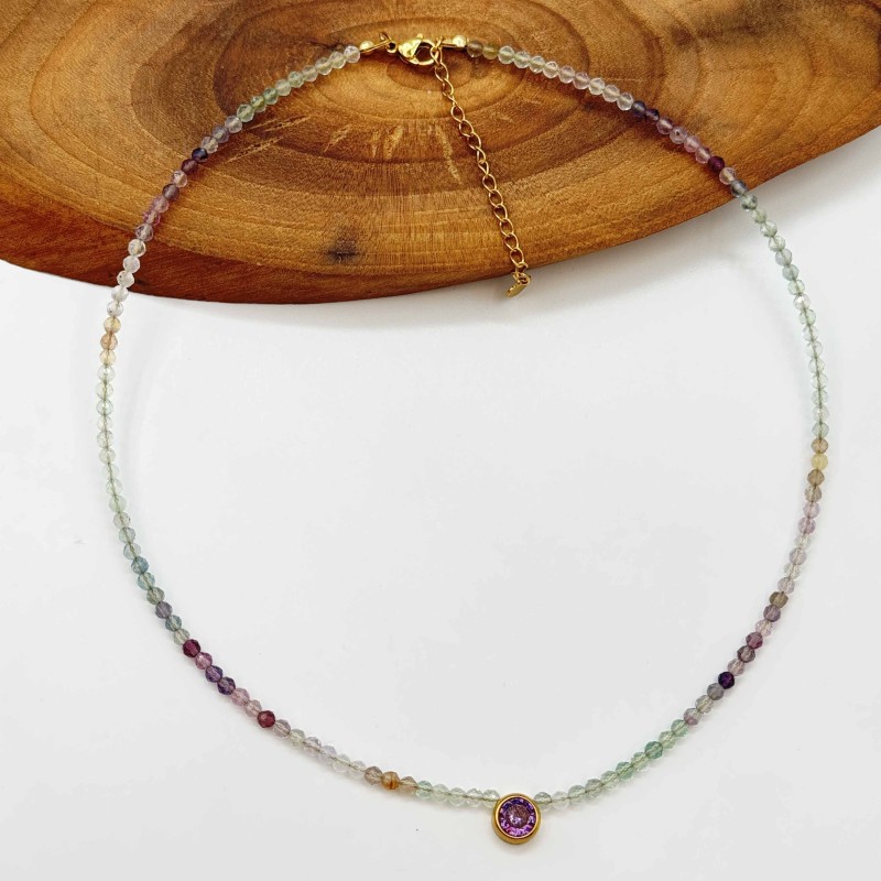 گردنبند فلورین رنگین کمانی تراش و نگین استیل