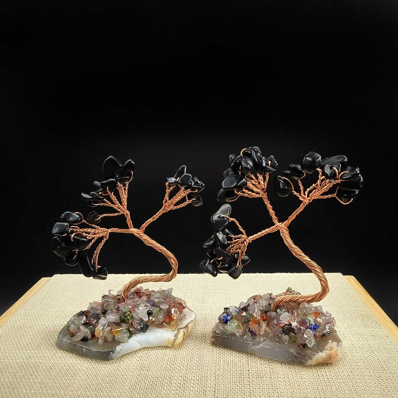 درختچه ثروت ابسیدین سیاه واسلایس عقیق کد 3