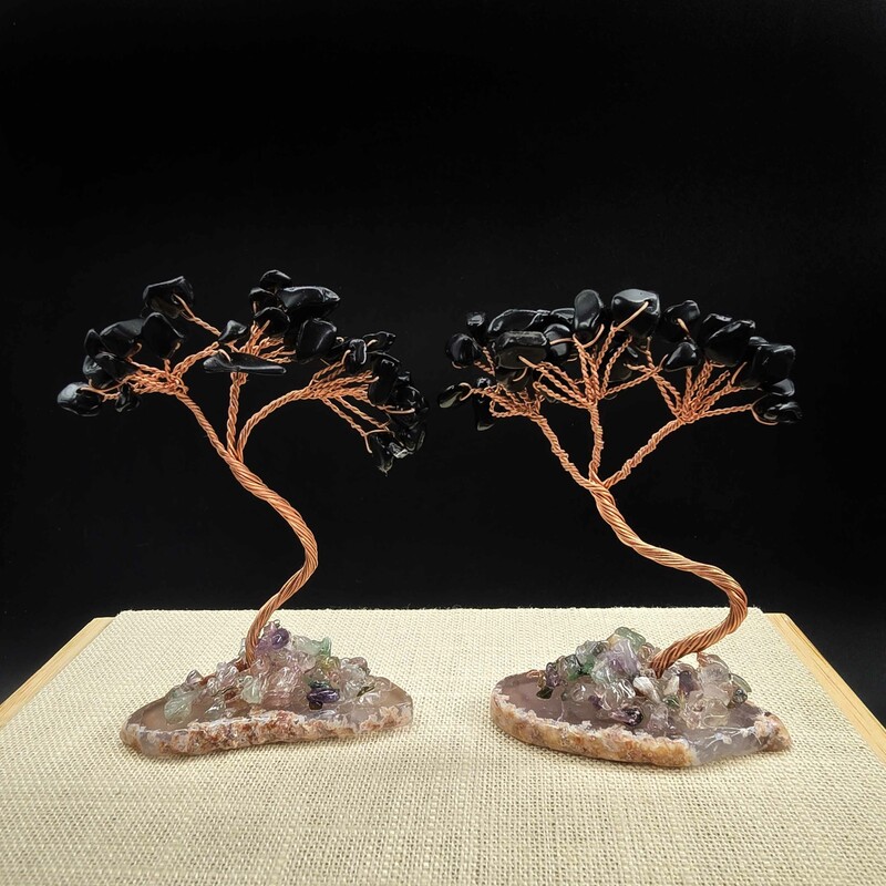 درختچه ثروت ابسیدین سیاه واسلایس عقیق کد 4