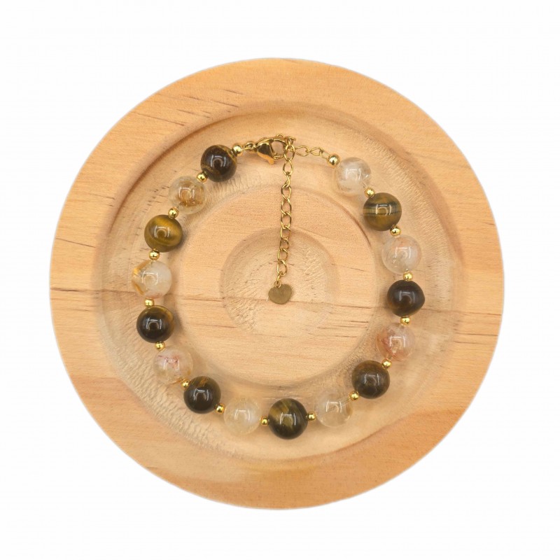 دستبند سنگ چشم ببر و سیترین کوارتز با متریال استیل