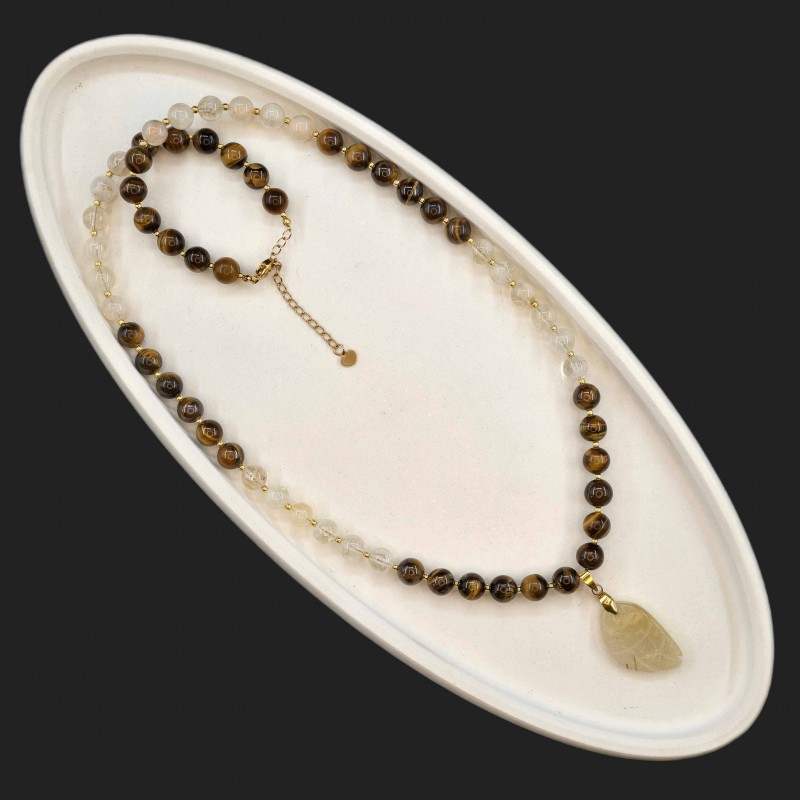 گردنبند سیترین کوارتز و چشم ببر و پلاک در مویی