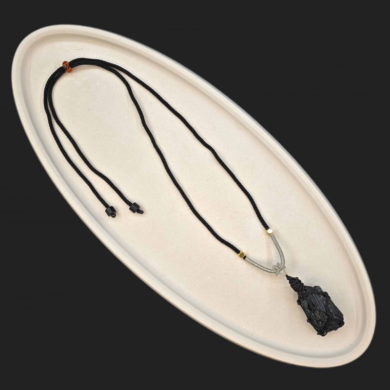 با گردنبند دستساز تورمالین سیاه، نهتنها یک زیور طبیعی و خاص به گردن دارید، بلکه انرژی قدرتمند محافظ این سنگ را همیشه همراه خود نگه میدارید. در این گردنبند از سنگ تورمالین سیاه راف استفاده شده که با مکرومه دستبافت ظریف و مقاوم احاطه شده است؛ ترکیبی از هنر دست و طبیعت.