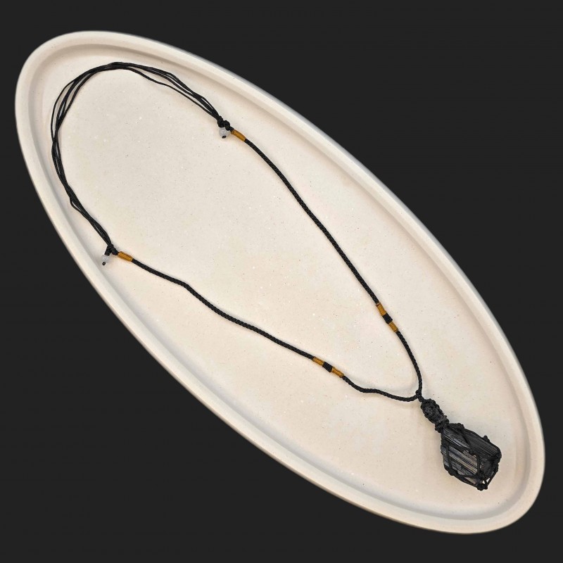 با گردنبند دستساز تورمالین سیاه، نهتنها یک زیور طبیعی و خاص به گردن دارید، بلکه انرژی قدرتمند محافظ این سنگ را همیشه همراه خود نگه میدارید. در این گردنبند از سنگ تورمالین سیاه راف استفاده شده که با مکرومه دستبافت ظریف و مقاوم احاطه شده است؛ ترکیبی از هنر دست و طبیعت.