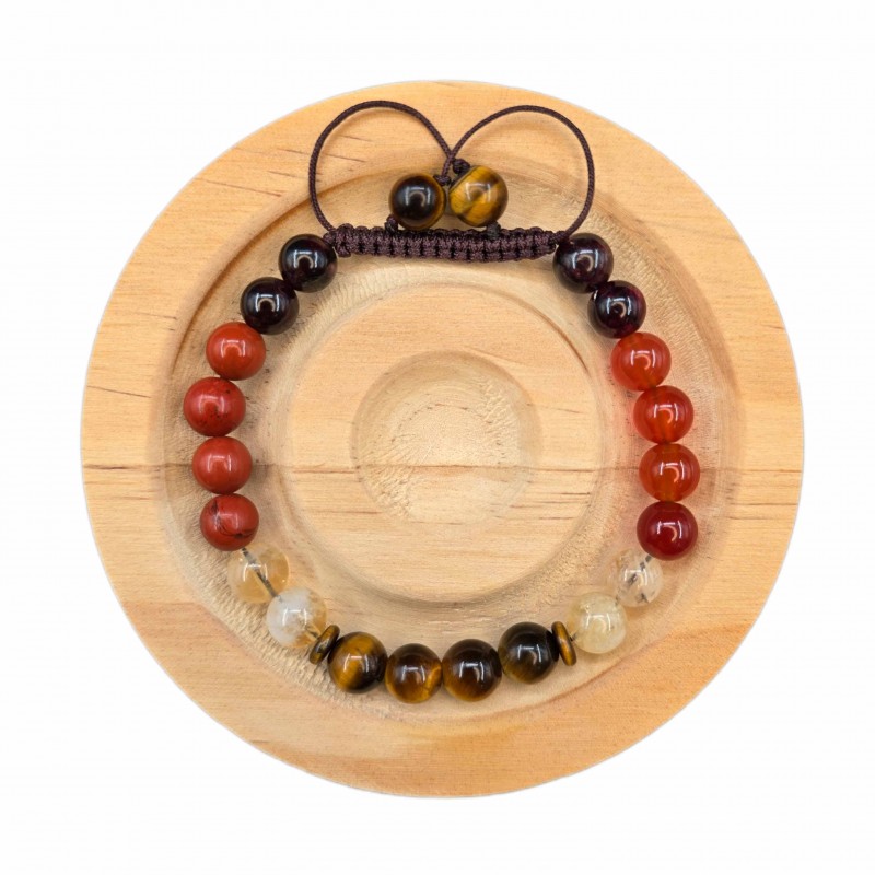 این دستبند مردانه با ترکیبی قدرتمند از سنگهای گرم و زمینی، مناسب افرادیست که عدد کوآ ۲ یا ۸ دارند . با رنگهای قهوهای، سرخ و طلایی، و طراحی ساده اما پرانرژی، انتخابی عالیست برای کسانی که به دنبال ثبات، اعتماد به نفس و قدرت درونی هستند – حتی اگر عنصرشان خاک نباشد.