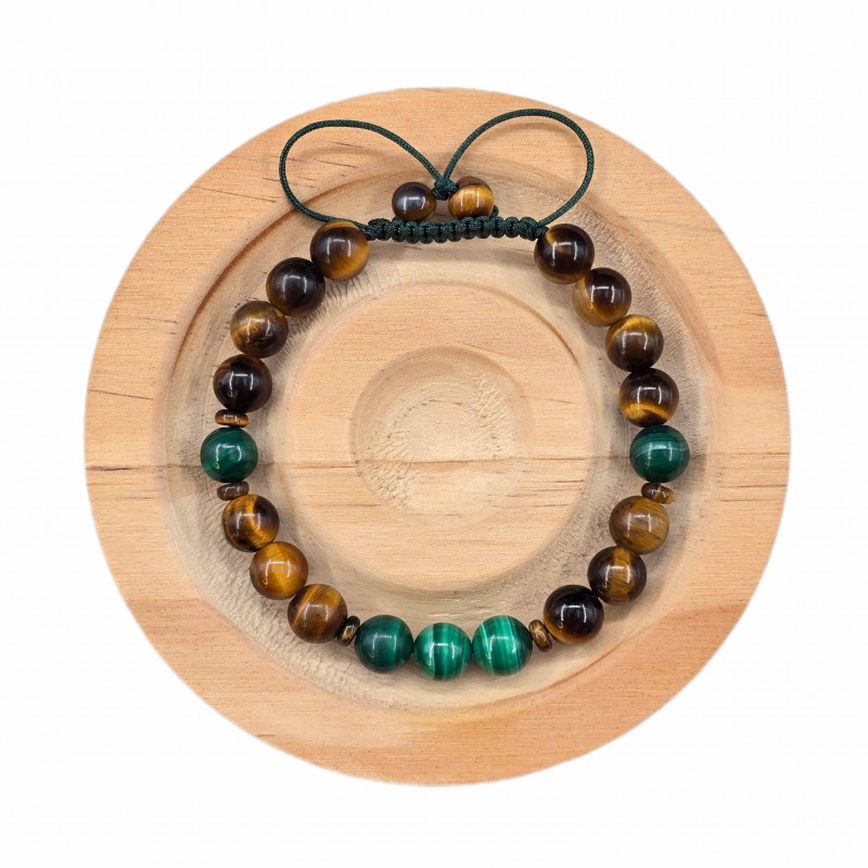 دستبند سنگ چشم ببر و مالاکیت (مردانه)
