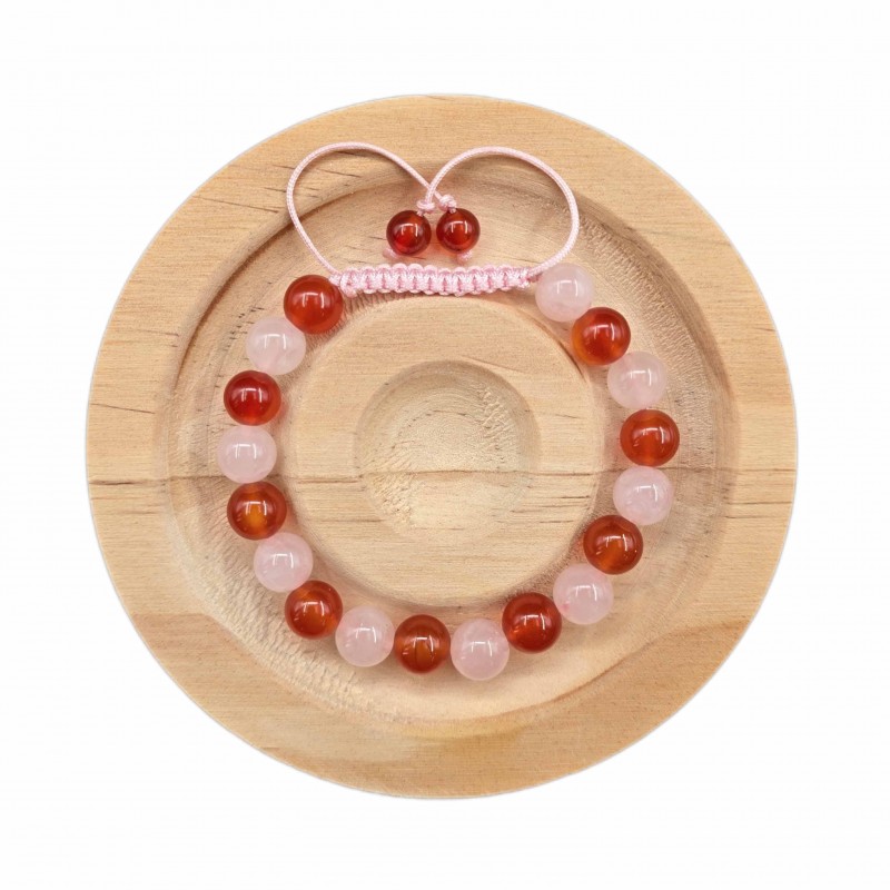 دستبند سنگ کوارتز صورتی ماداگاسکار و عقیق کارنلیان
