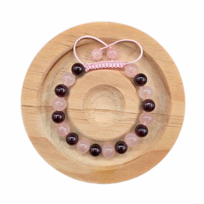 دستبند سنگ کوارتز صورتی ماداگاسکار و گارنت سرخ